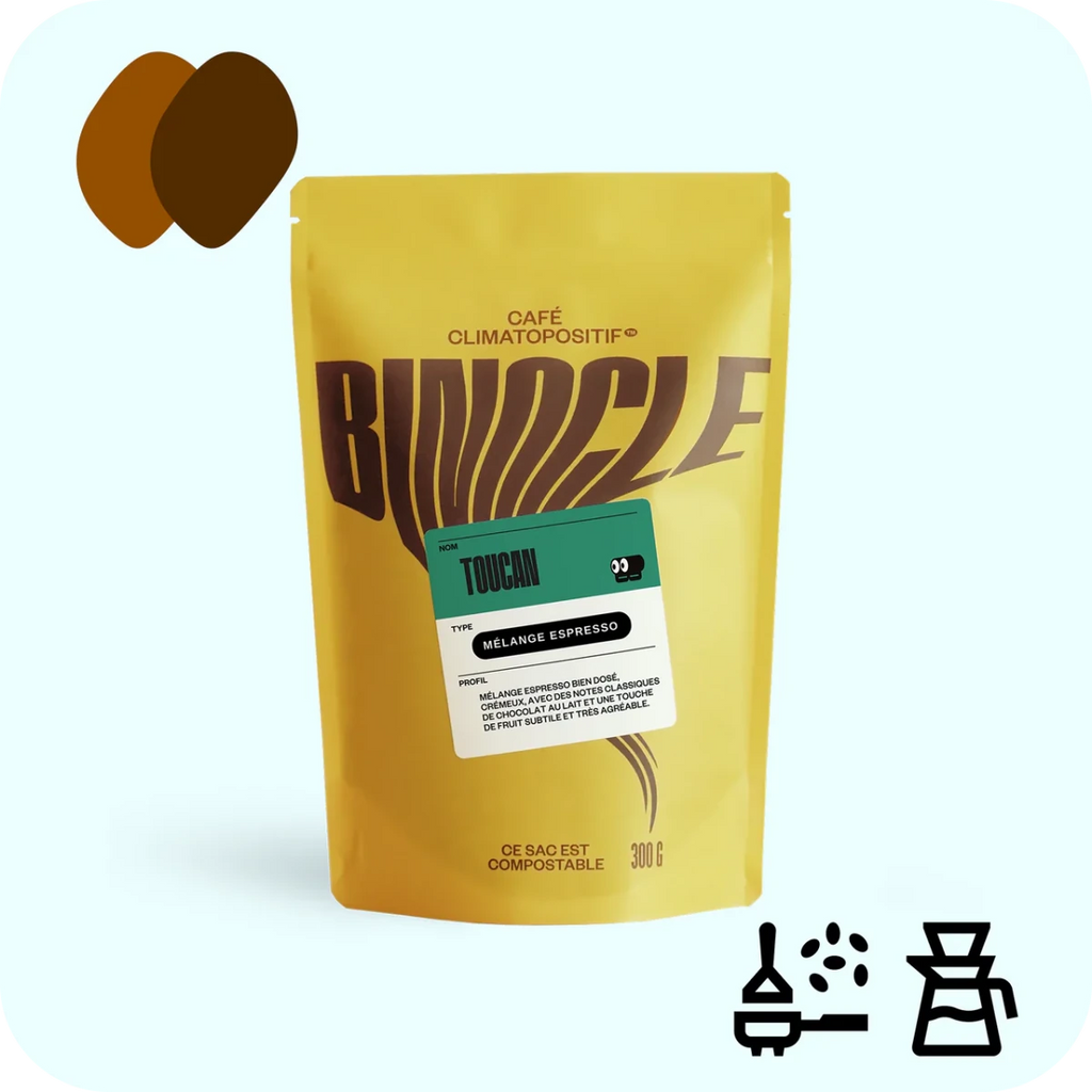 With a medium roast rather than a dark roast, we can achieve a lot of nuances, without compromising on the syrupy, robust side we want to find in the ideal espresso. This coffee has been our trademark since day 1 for good reason: it's impeccable, and everyone pleases. A home run!