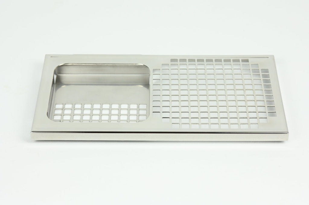 This drip tray with scale mount, made from high-quality, polished stainless steel, comes with a conversion kit for the La Marzocco Linea Micra, which replaces the original components and later allows for a complete reversion without damage. Just a few simple steps, no tools required (see video below)! This is the perfect solution for a flush integration of the Acaia Lunar, allowing for up to 15mm additional cup clearance between the grate and portafilter spouts along with ease of use.