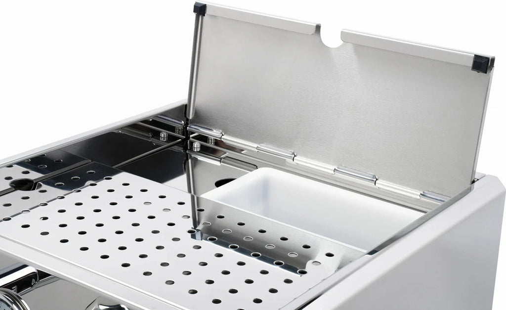 Equipped with a 0.75L stainless steel coffee boiler and a 2.0L steam boiler, enabling simultaneous brewing and steaming with optimal temperature stability