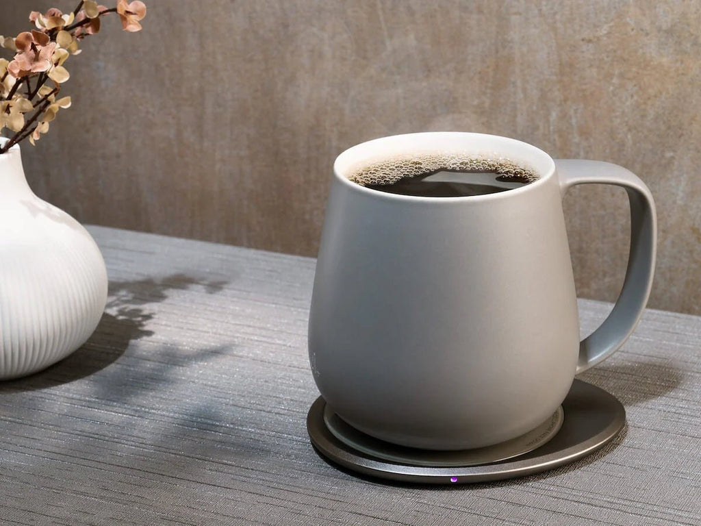 Elevate your coffee experience with the Ui+ Fine Ceramic Self-Heating Mug from OHOM. Keeping your coffee at the optimal drinking temperature of 55°C/130°F via electromagnetic induction heating, the dual-purpose OHOM Pad also wirelessly charges your cell phone.